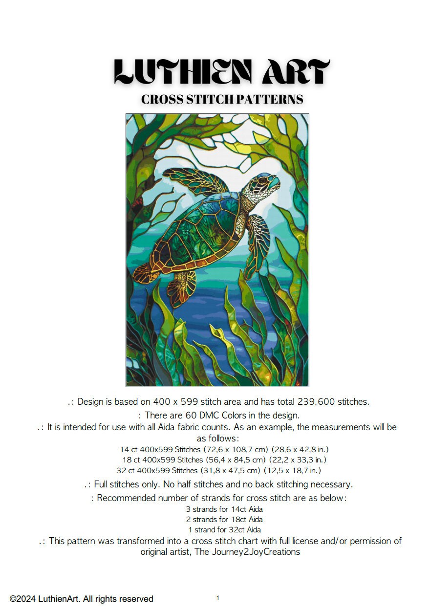 Sea Turtle Cross Stitch Pattern, Turtle Needlepoint, Stained Glass